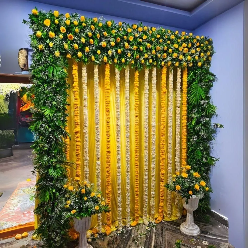 If you’re looking for something unique and visually striking, this floral Haldi/Mehndi backdrop is designed to elevate your celebration. Crafted with creativity and elegance, it adds a special charm that enhances both the experience and the setting.