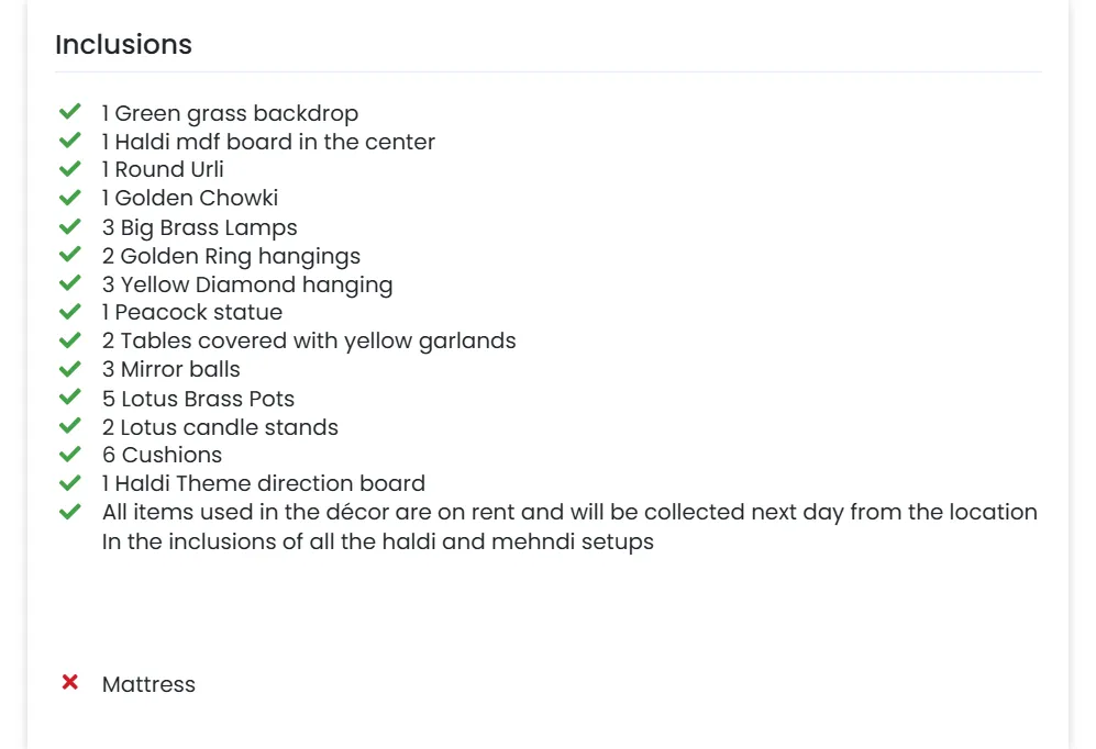 The setup features a lush green backdrop with a central Haldi board, complemented by a lotus urli and a traditional chowki. Decorative elements like brass lamps, golden ring hangings, and diamond accents enhance the overall look, while a peacock statue adds a unique focal point. Additional details such as floral-covered tables, mirror balls, lotus pots, candle stands, and comfortable cushions complete the arrangement, creating a well-balanced and visually appealing setup.