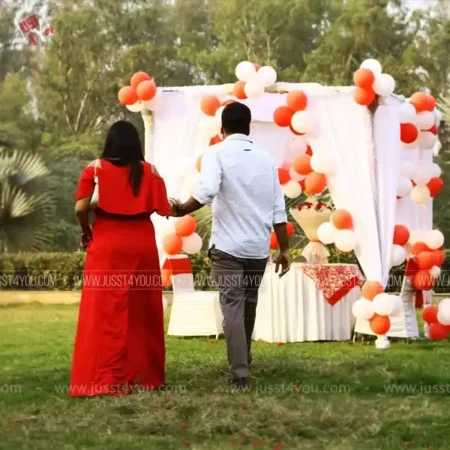 Experience an intimate and romantic evening with The Den Cabana. Enjoy a white cabana setting with a breathtaking lakeview, a rose petal pathway, and red and white themed décor. Indulge in a six-course North Indian meal for a couple, while jazz music sets the perfect mood for your special night.